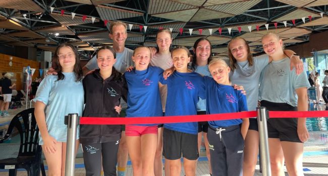 Die Schwimmerinnen haben das hervorragend gemeistert, mit viel Spaß und gegenseitigem Anfeuern. Als Ergebnis wurde der dritte Platz in der Jahrgangswertung erreicht. Und den Trainerinnen und den Trainern hat es wohl auch Freude gemacht, siehe erstes Foto.
