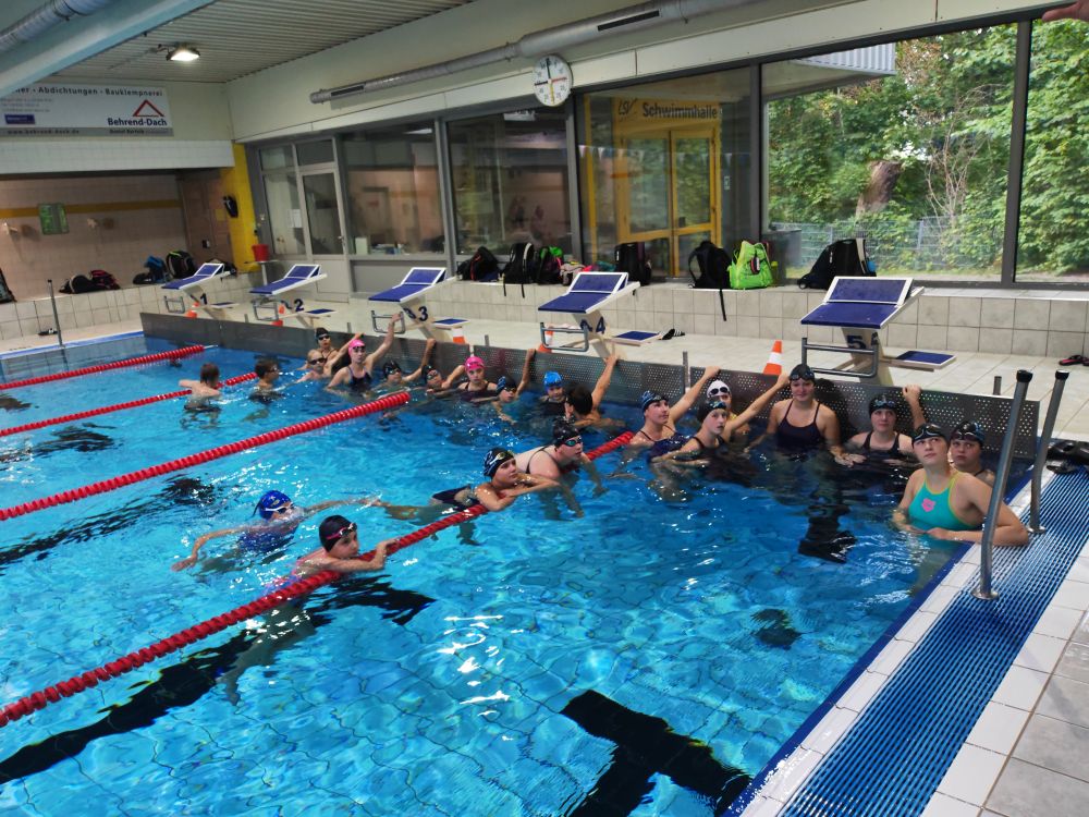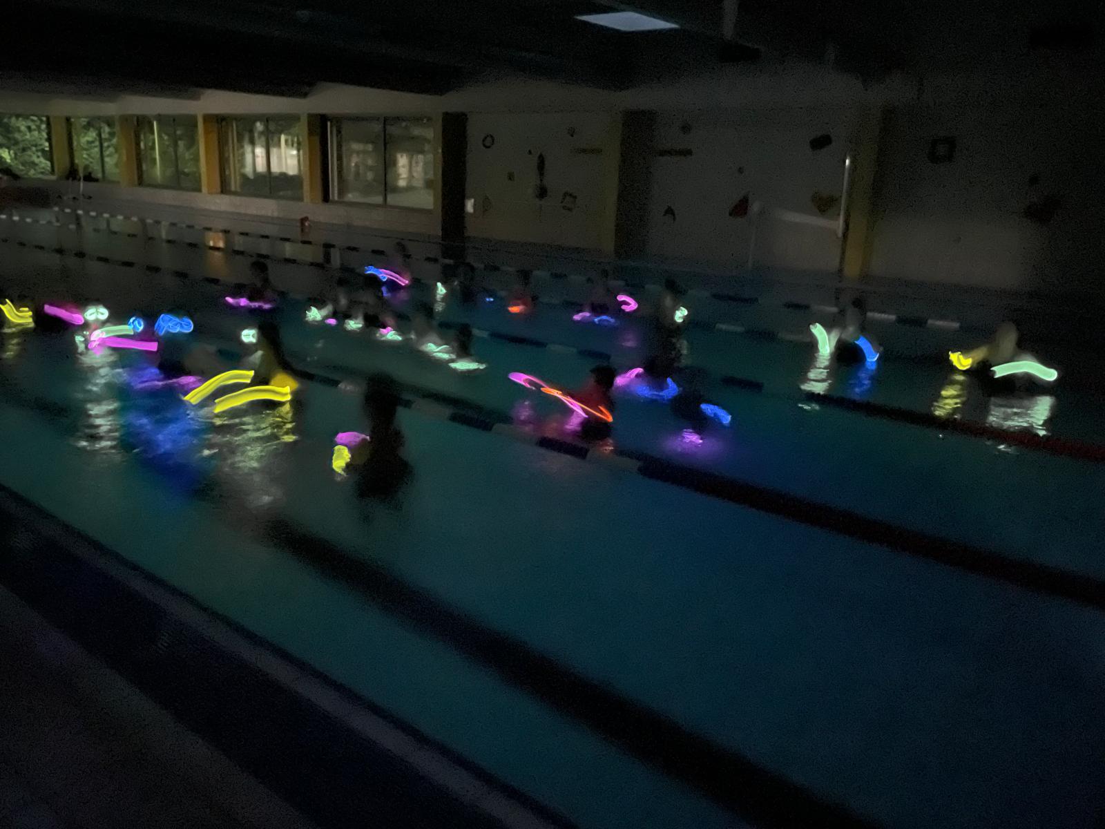 Dazu gab es gelungene Aerobic-Einheiten, dabei gefiel Allen die Aqua-Aerobic mit Musik in dunkler Halle und mit Leuchtstäben sehr. Auch Spiel und Spaß fanden ihren Platz, Nach dem Trainingslager waren Alle ermattet und es war am Sonntagnachmittag erst einmal Erholen angesagt. Die vielen Nachrichten der Eltern und Schwimmerinnen und Schwimmer zeigen, wie gut das Trainingslager gefallen hat.