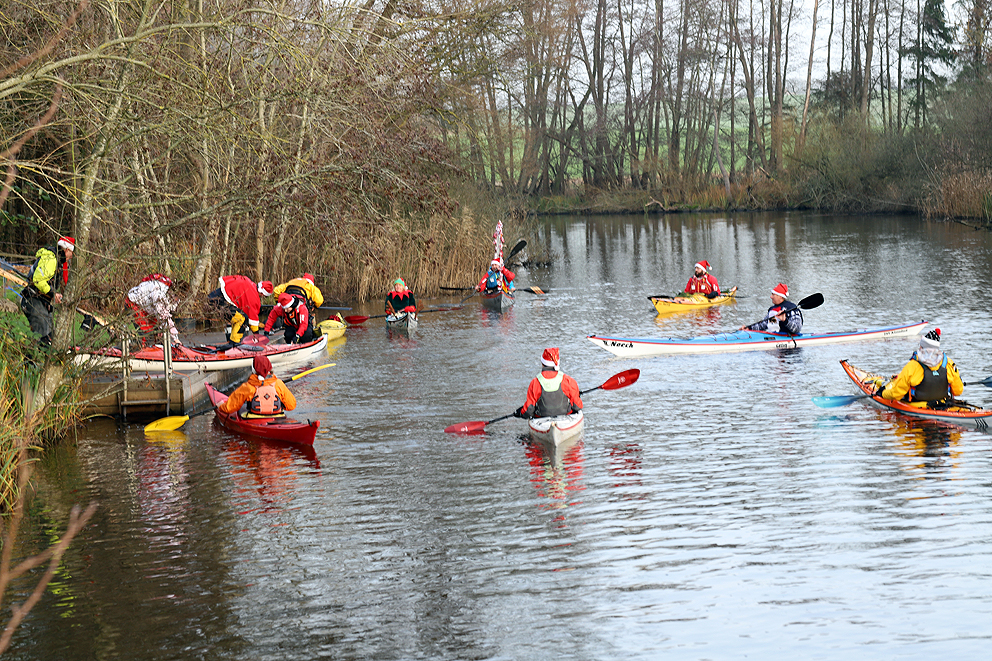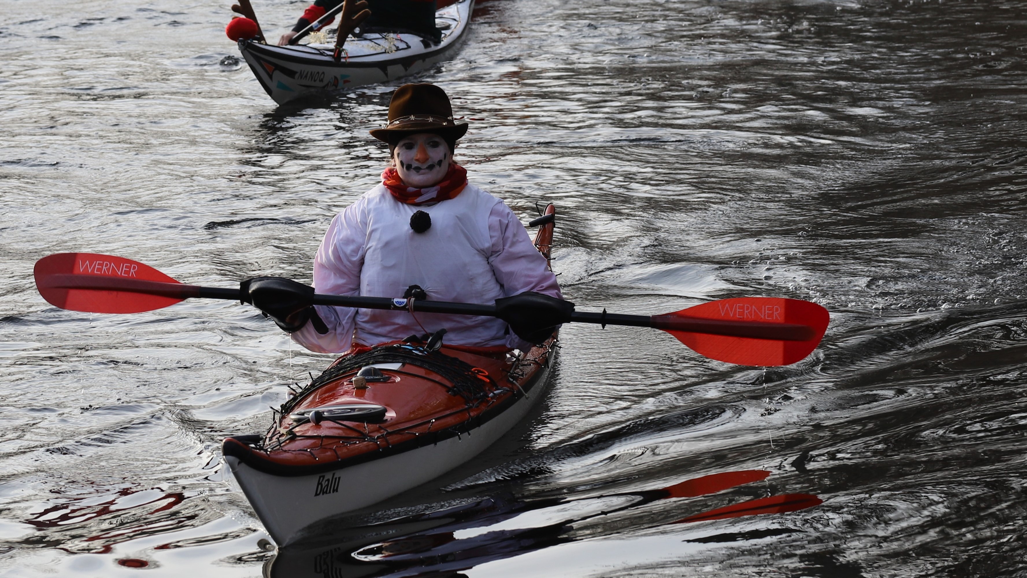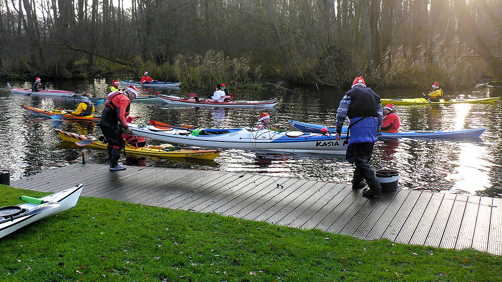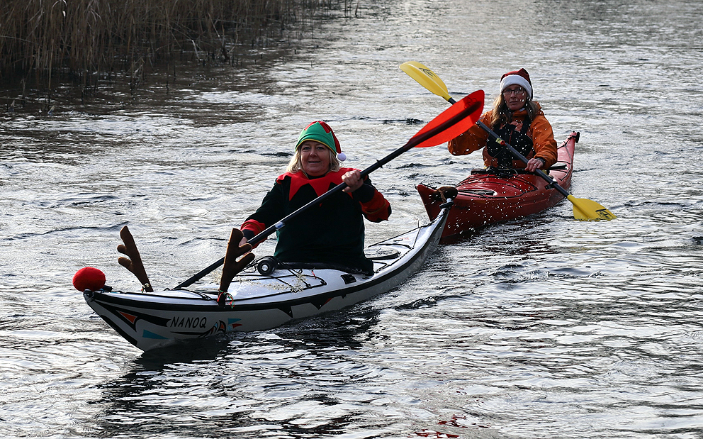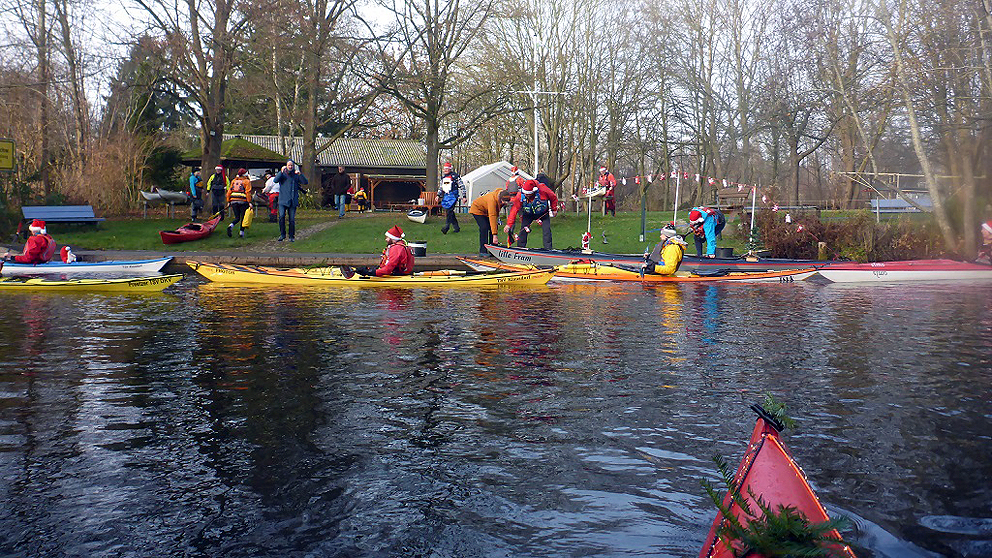 Der Tag ist überraschend sonnig und wir bunten Paddler im Weihnachtsoutfit fallen doch ziemlich auf und wir werden viel fotografiert.