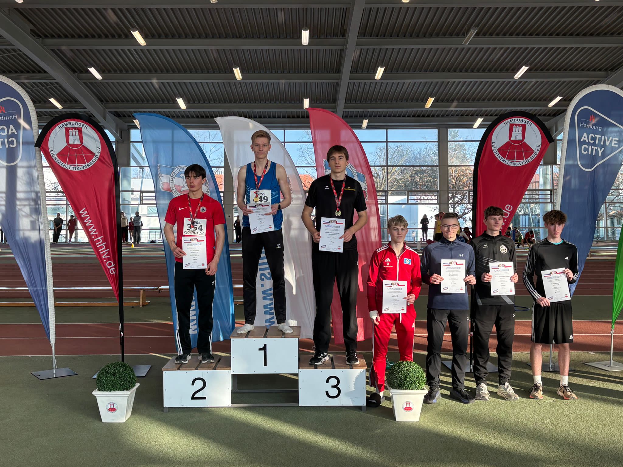 Lina Stölting, bereits Vorlauf-Schnellste, gewann in der w14 die 60m, im Weitsprung gewann sie die Bronzemedaille. Tjark Bohrer(M14) belegte den Silberrang im Kugelstoßen, Adam Witzki wurde Dritter im Hochsprung der M14.